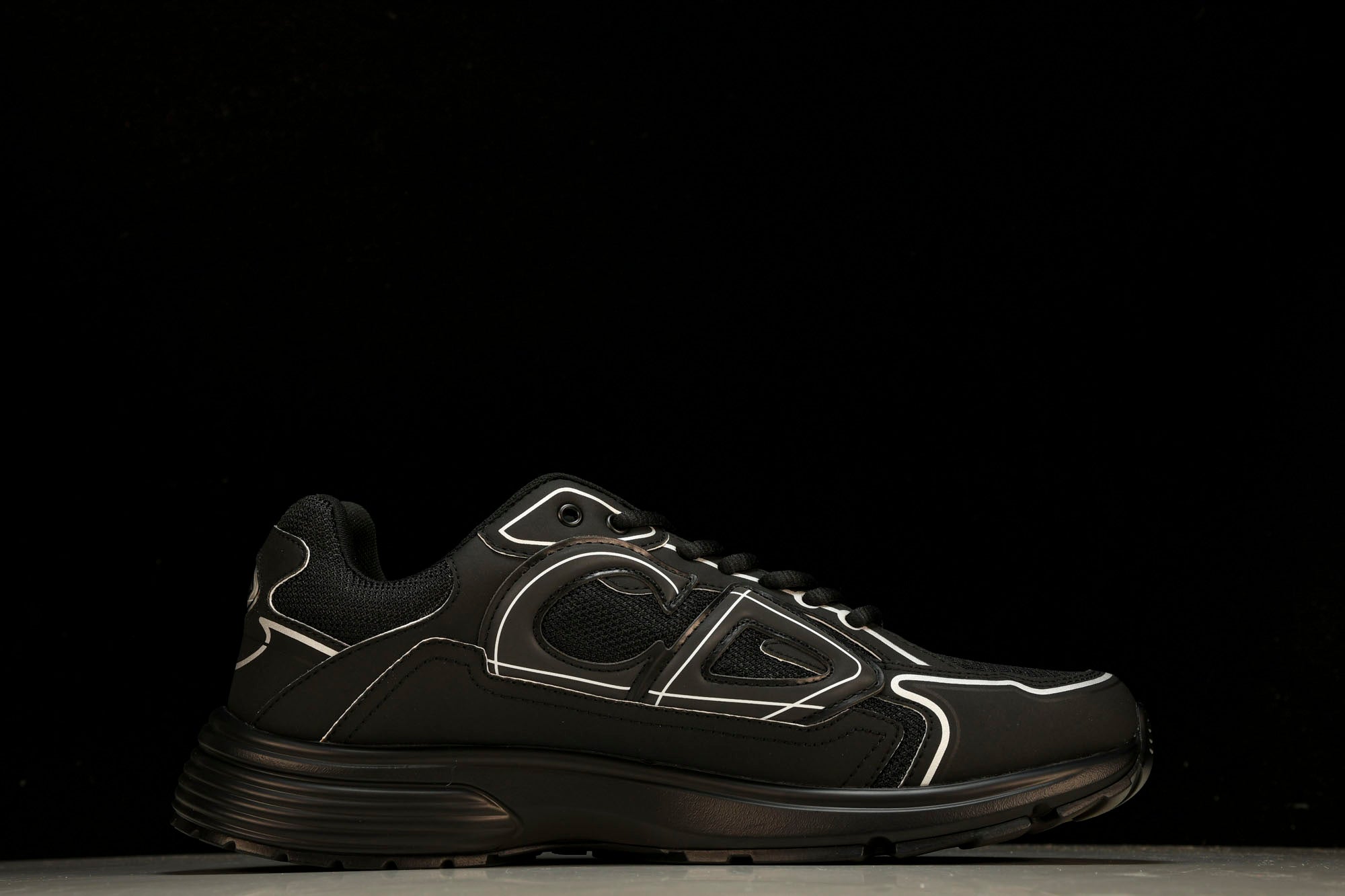 Embrace the allure of timeless sophistication with the D1or B30 ‘Triple Black.’ Crafted from premium materials, this sneaker boasts a sleek all-black colorway, exuding a sense of understated luxury. The monochromatic design is accentuated by the prominent D1or “CD” branding, creating a cohesive and elevated aesthetic. Meticulous attention to detail and top-notch craftsmanship make these sneakers a statement piece that seamlessly blends luxury and versatility.