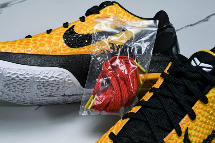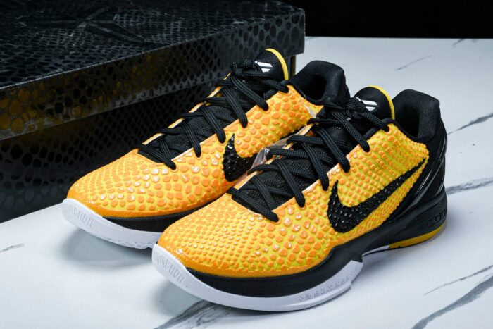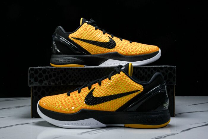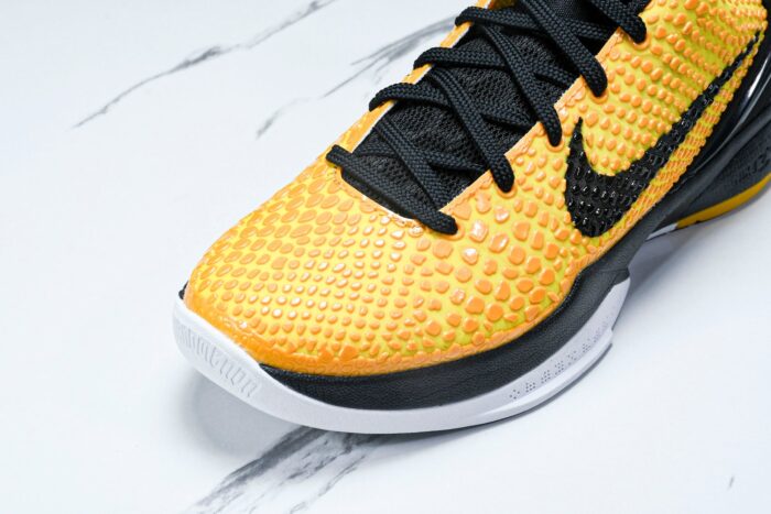 The Kobe 6, designed by Eric Avar, was a groundbreaking basketball shoe that redefined performance and style, worn by Kobe during the 2010-2011 NBA season. Inspired by soccer cleats, its innovative low-cut design revolutionized the game, offering unprecedented ankle mobility. The snakeskin textured polyurethane upper pays homage to Bryant’s ‘Black Mamba’ nickname. The Phylon-injected midsole and ZM AR units offer a comfortable and responsive performance, while the molded heel counter provides stability. With countless iconic colorways, the Kobe 6 remains a sought-after shoe among sneaker enthusiasts and basketball fans alike.