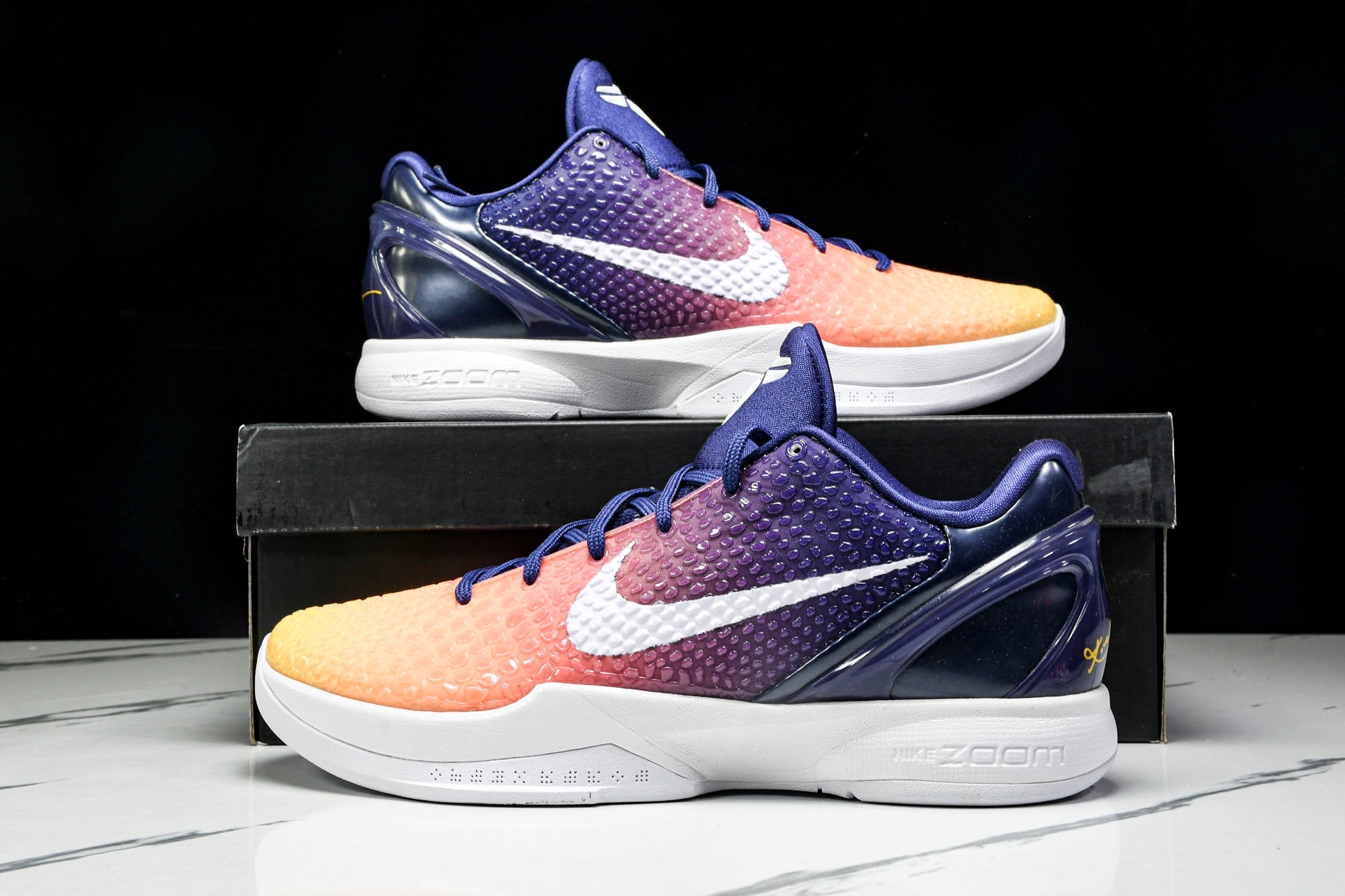 The Kobe 6 Protro ‘Devin Booker’ PE was worn and debuted on court by Booker, a known torchbearer of the Mamba Mentality. Dressed in Phoenix Suns-themed colors, it balances deep purple with orange accents for a clean, striking look. Classic textures and low-profile construction ensure it stays true to the silhouette’s DNA. Though never released to the public, it stands as one of Booker’s most iconic tributes to Kobe.