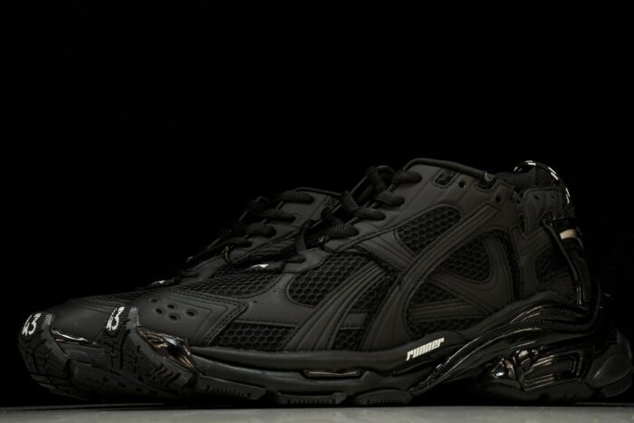 The B Runner showcases another edgy design that perfectly captures the brand’s commitment to the sportswear aesthetic. This sneaker’s upper incorporates mesh and nylon paneling for effective ventilation during movement, ensuring comfort and breathability. Complemented by a chunky ridged rubber sole that provides ample support, these sneakers combine style and functionality effortlessly. The sleek ‘Triple Black – Matte’ version, swathed in all-black, maintains the bold and sporty design that is characteristic of B’s sportswear aesthetic. It’s a sophisticated choice for those who value both fashion and performance in their sneakers.