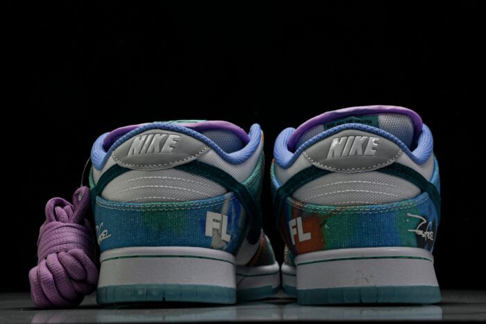 Step into a world of art and innovation with the SB Dnk Low x Futura Laboratories ‘Bleached Aqua’. This sneaker blends iconic street art with top-tier skateboarding functionality, featuring a vibrant canvas upper adorned with Futura’s dynamic strokes. This is a collaboration with Futura Laboratories (“FL”), the innovative design studio and experimental lifestyle brand based in Brooklyn, founded by the namesake artist FUTURA. It enhances the SB Dnk Low with durable, lightweight canvas and responsive cushioning, ensuring both visual appeal and performance. Released in May 2024, this sneaker is a tribute to Futura’s revolutionary artistry and NK’s commitment to quality, making it a standout piece in any collection.