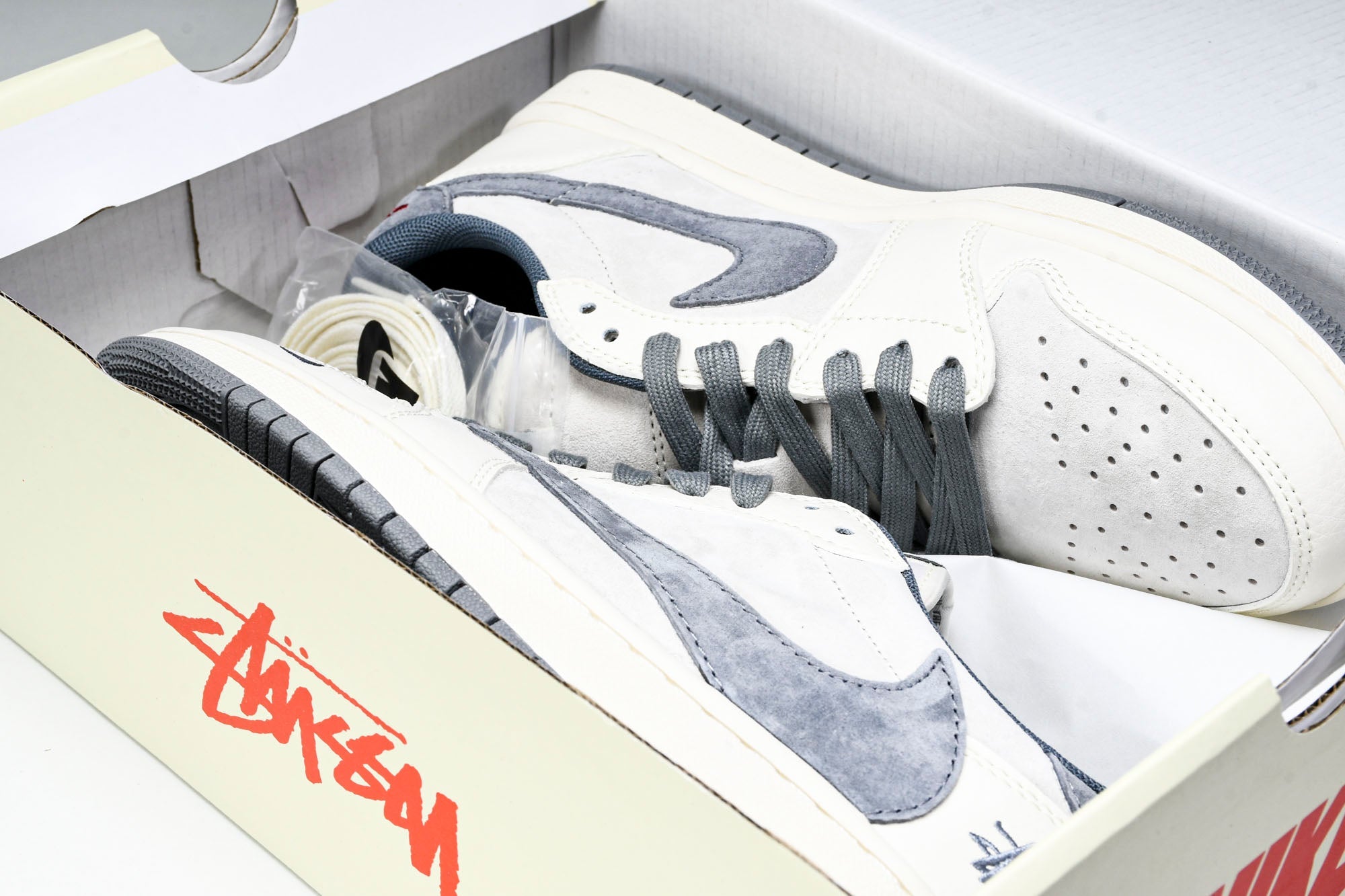 Travis Scott AJ1 Low x Stussy ‘Grey White’ (Custom)